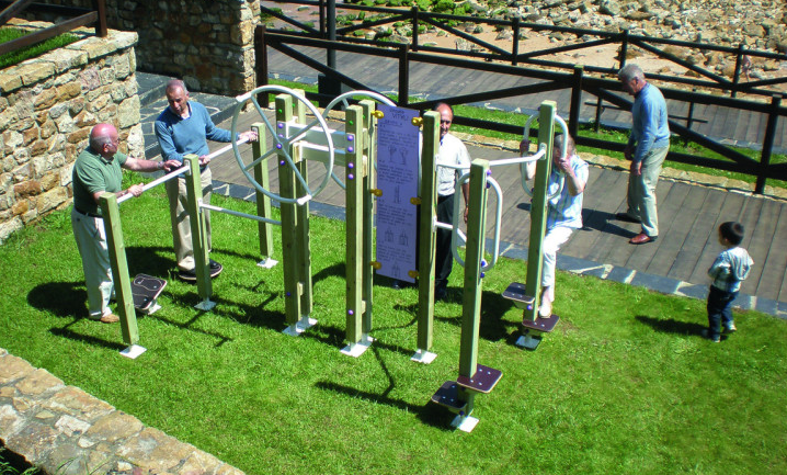 - Parcours sportifs avec des équipements de fitness en plein air (barres de traction, agrès pour abdos, steps, etc.).